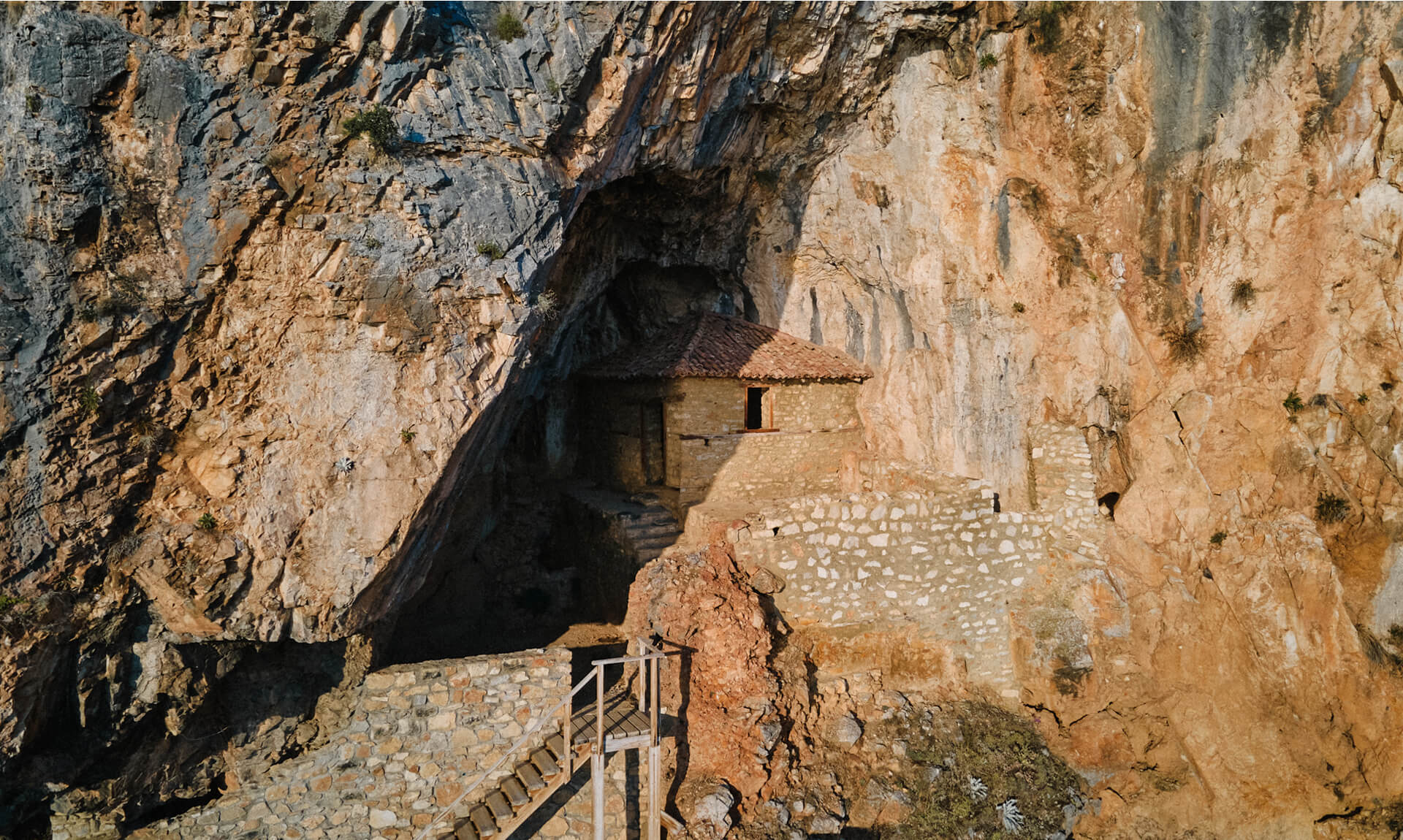 Συνεχίζουμε και βλέπουμε το πρώτο από τα τρία εκκλησάκια που υπάρχουν στην ελληνική πλευρά το οποίο είναι η “Μεταμόρφωση του Σωτήρος”, συνεχίζουμε στο εκκλησάκι της “Αναλήψεως” και τέλος φτάνουμε κοντά στα ελληνοαλβανικά σύνορα και στο πιο εντυπωσιακό εκκλησάκι όλης της περιοχής, την “Παναγία Ελεούσα” το οποίο βρίσκεται μέσα σε μια μεγάλη σπηλιά σε υψόμετρο 40 μέτρων από την επιφάνεια της λίμνης!
